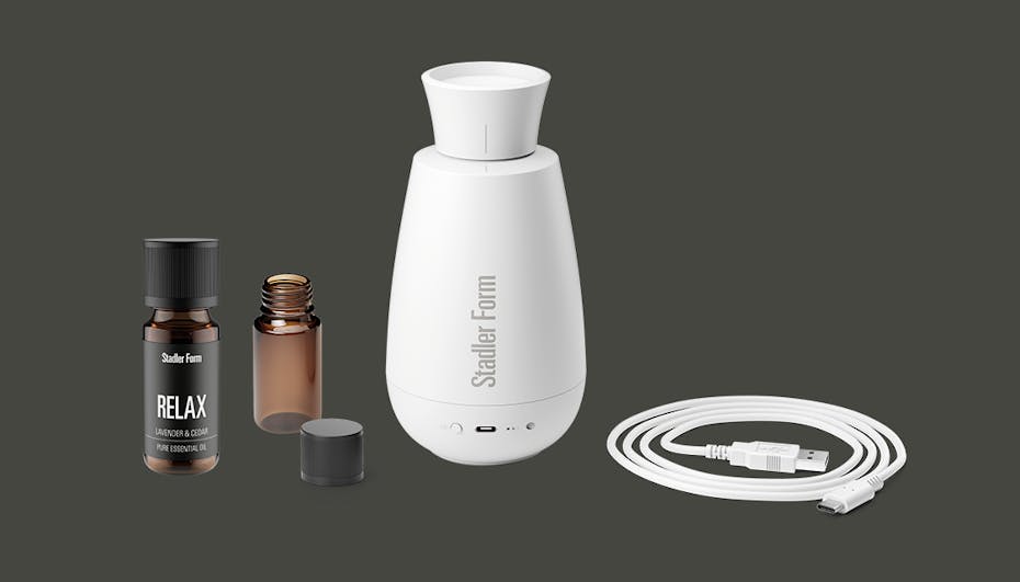 You probably already have a suitable power adapter at home. It is important that it supplies 5 V / 2 A. Therefore, we just include a USB-A to USB-C cable. This allows you to charge your aroma diffuser in no time at all. You will also receive an empty aroma bottle (15 ml) and the essential oil blend Relax (10 ml). The scent of lavender, warm wood notes and a hint of lemon ensures hours of relaxation.