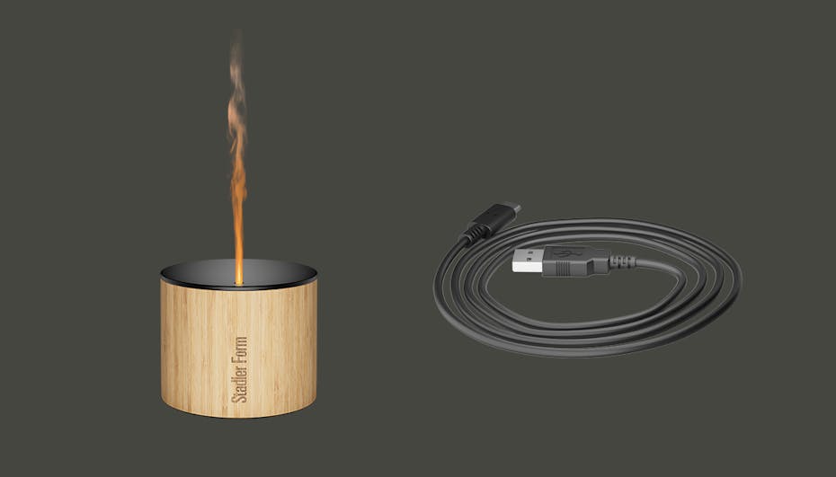 The exquisite aroma diffuser lady Nora enchants the senses: Nora scents the room with essential oils and her amber-coloured light provides a calming play of flames with cool mist. The light can be dimmed and switched off. Nora runs for up to 18 hours when plugged in. Thanks to the USB-C cable and her rechargeable battery, she can also be used on the move for up to 7 hours. Her black aluminium lid and the sustainable bamboo housing embellish any room. And thanks to splash water protection, Nora is also suitable for outdoors.